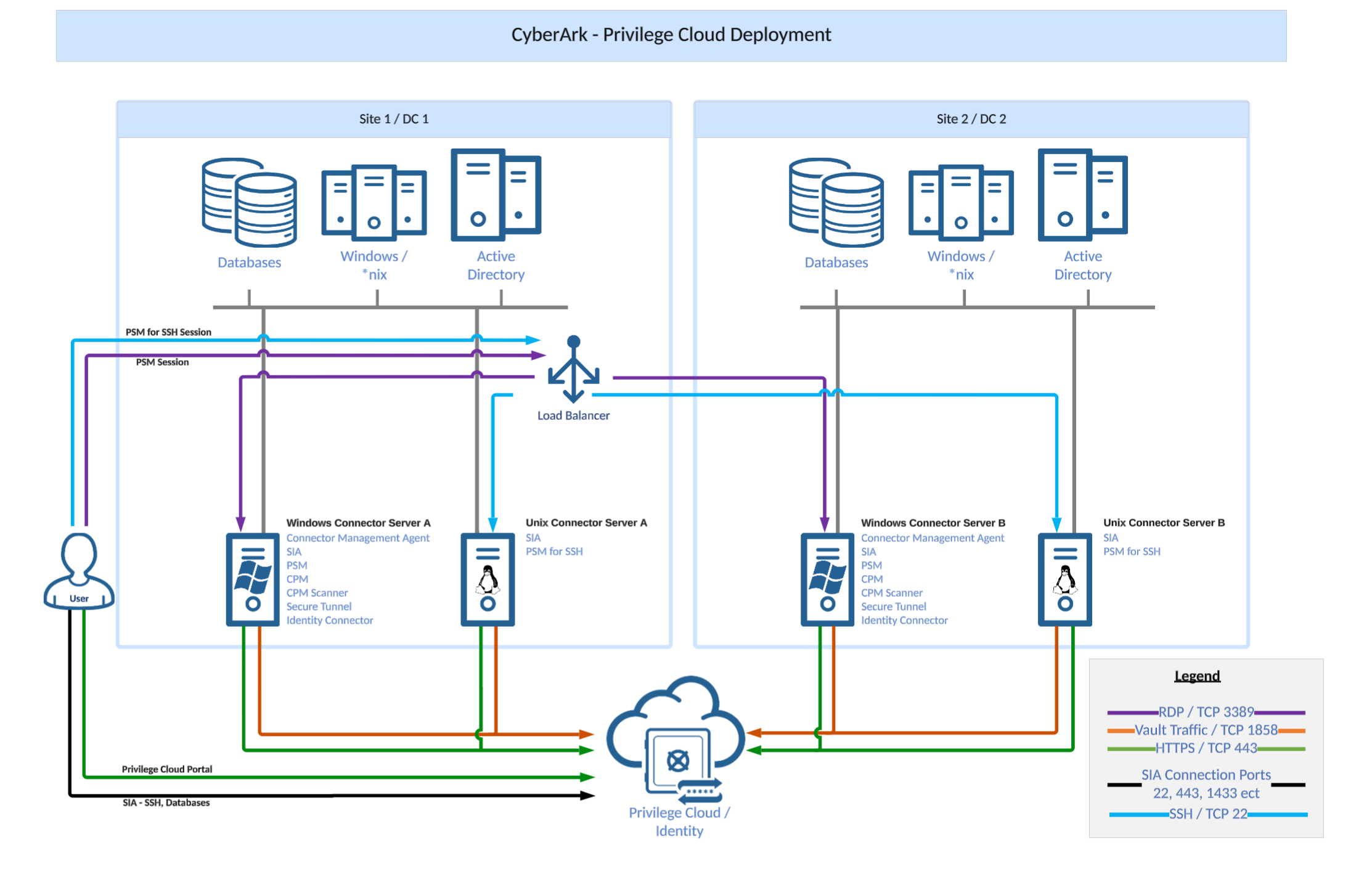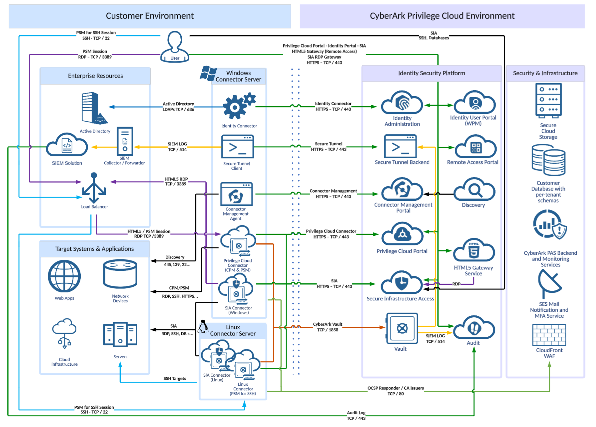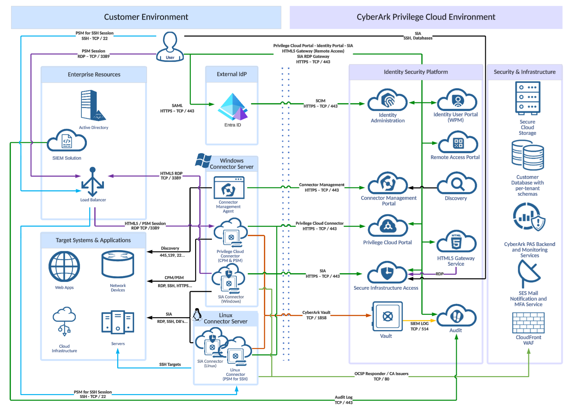 The below diagram is a high level overview on how a typical environment will connecto to CyberArk Privilege Cloud ISPSS.